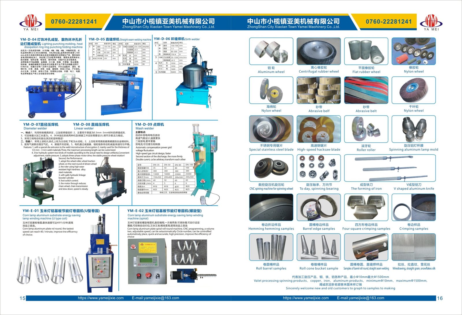 Tube and Aluminum Processing Machines – such as cutting machines, spinning machines, and polishing machines used for aluminum lamp bodies, reflectors, and decorative shells.